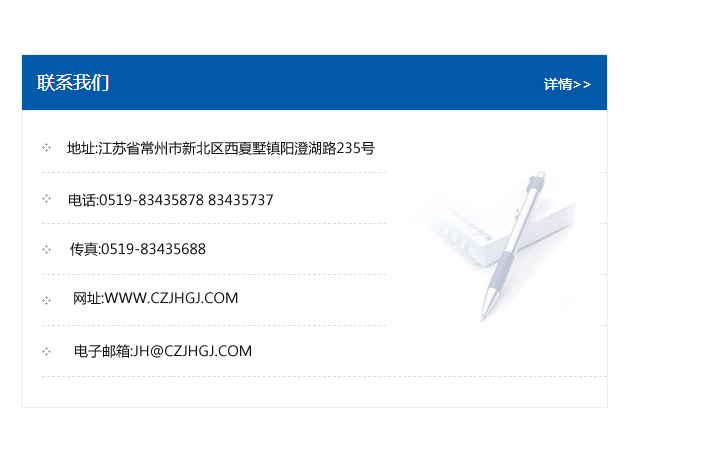 地址:常州市新北區友邦商務大廈1幢16、17層  電話:0519-85101652  傳真:0519-85112595  郵編:213022  網址:www.cz-jiayue_cn.zhongdunjinwei.com  郵箱:xiajifengaa@163.com